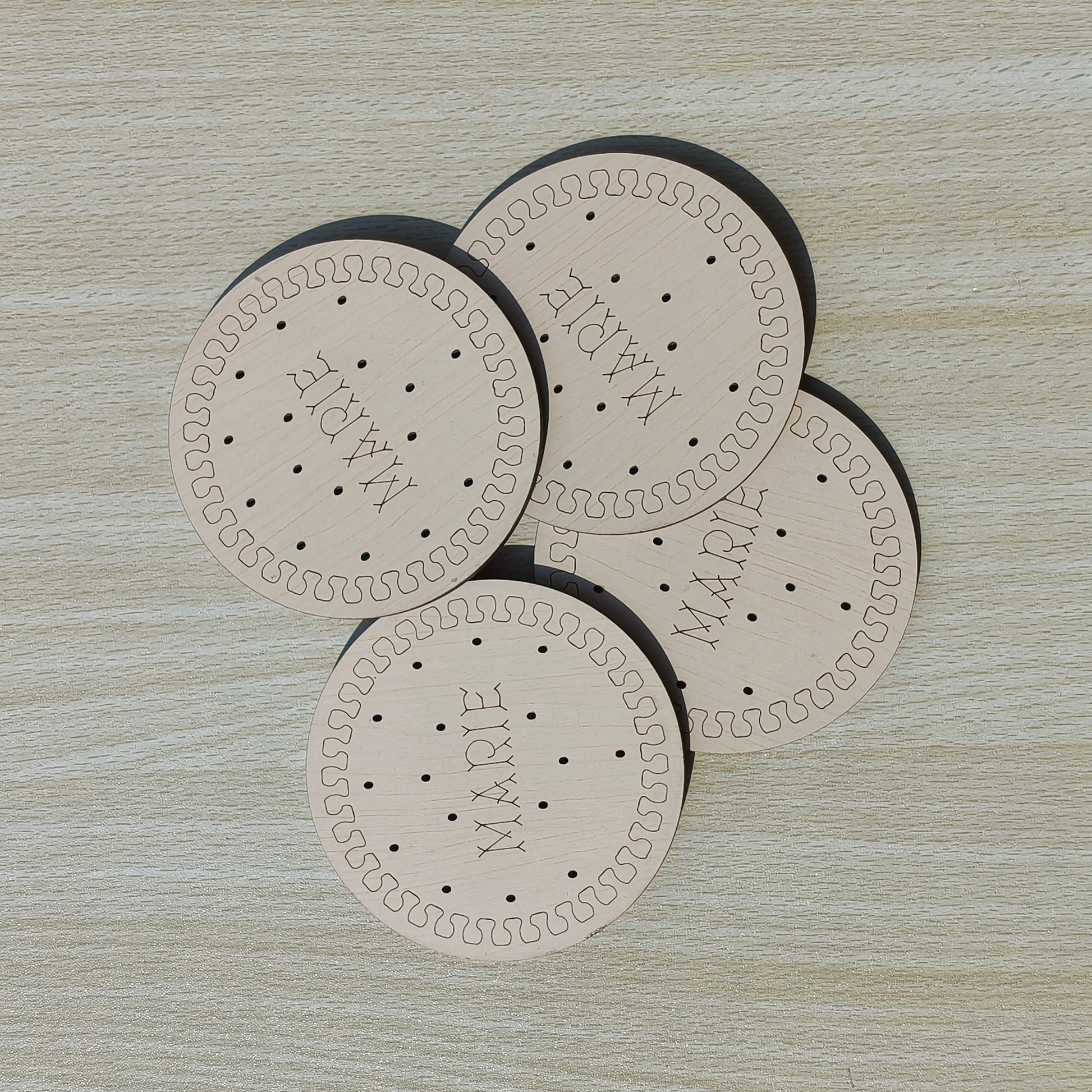 Elegant set of 4 tea coasters with an intricately engraved Marie Biscuit motif. Crafted from durable laminated MDF, each coaster measures 3.5 inches in diameter and 4mm in thickness.