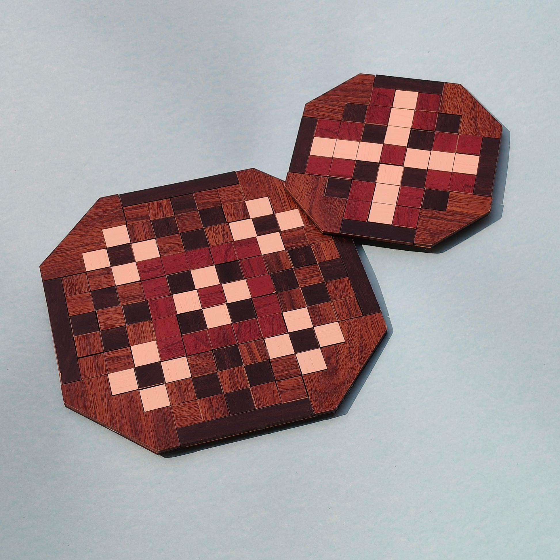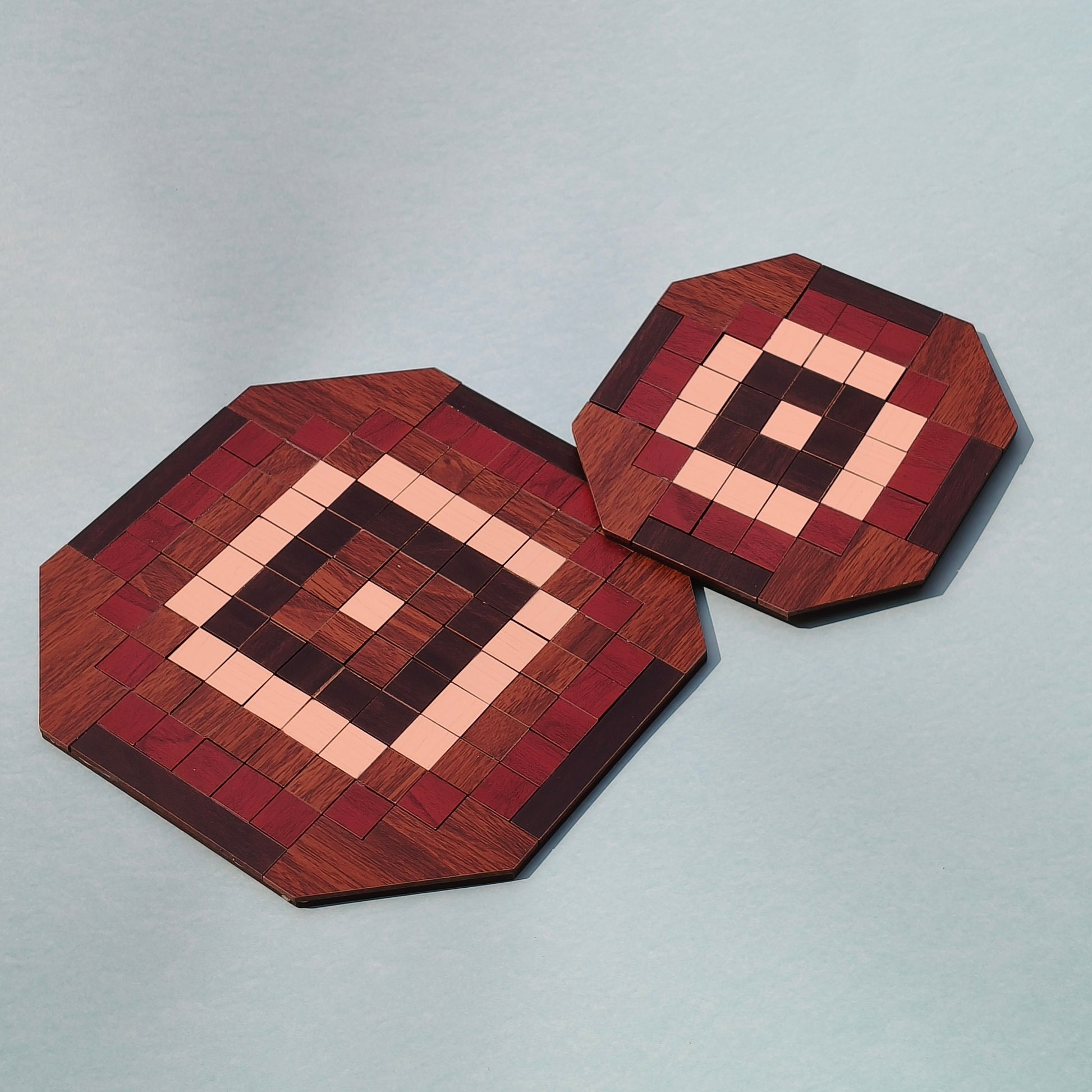 Set of 2 pieces hot plates made of laminated MDF which is heat and humidity resistant.